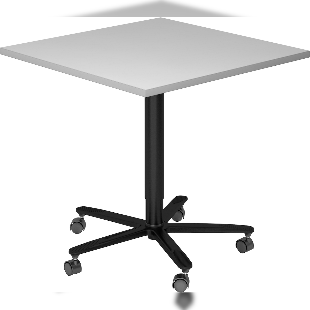 bümö Säulenhubtisch höhenverstellbar, Stehtisch Büro, Bistrotisch eckig 80 x 80 cm - Besprechungstisch grau, Stehtisch Holz-Platte, Säule aus Metall