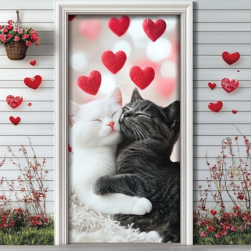 decorazioni esterne per San Valentino copriporta arazzo per porta tenda per porta decorazione fondale interno/esterno striscione per porta d'ingresso fattoria gatti coppia