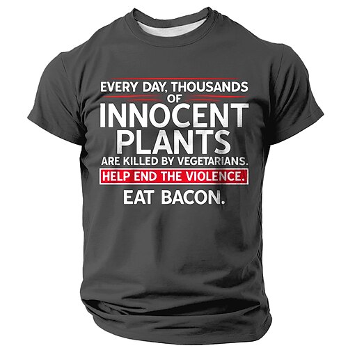 Maglia uomo divertente Mangia bacon e fermare la violenza sulle piante maglia grafica vegetariana umoristica a maniche corte.