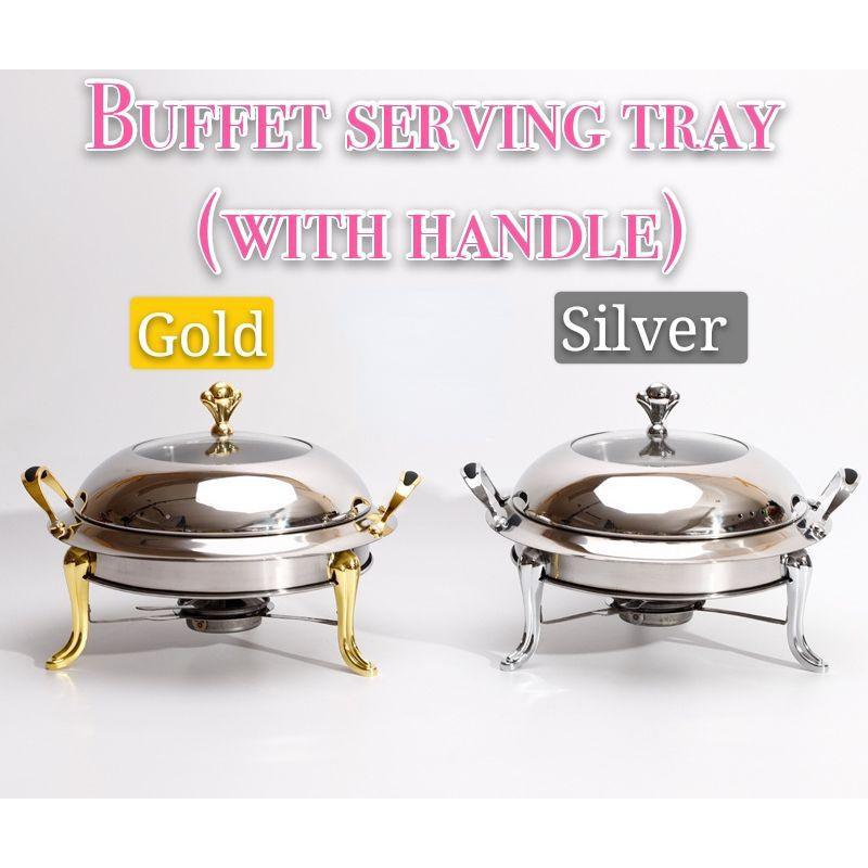 2.5L/3L Stainless Steel Buffet Serving Tray Set Food Tray Chafing Dish Soup Warmer Tray Set New gold