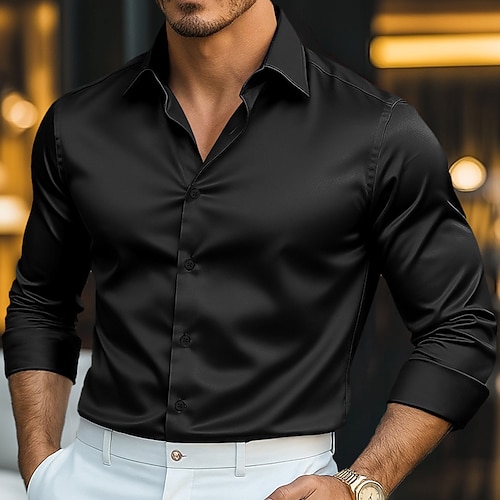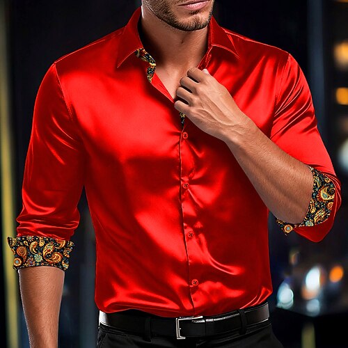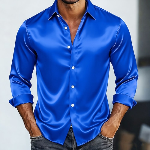 Per uomo Camicia Camicia in raso Camicia elegante Camicia casual Camicia con Bottoni Camicia da Ballo Semplice Formale Matrimonio Nero Rosso Blu reale Oro Manica Lunga Bavero Tutte le stagioni