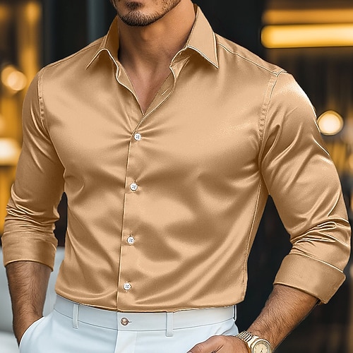 Per uomo Camicia Come la seta Camicia in raso Camicia casual Semplice Formale Matrimonio Argento Nero Oro Verde Manica Lunga Bavero Primavera Autunno Tutte le stagioni Abbigliamento Arricciato
