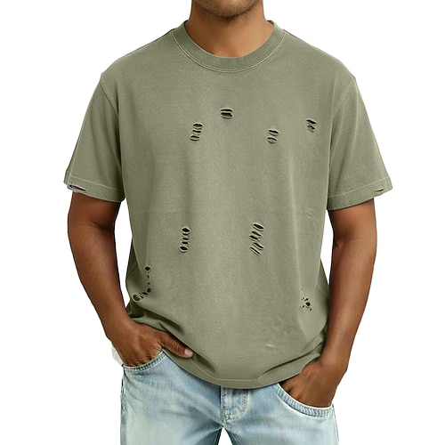 Per uomo Maglietta Camicia 100% cotone lavaggio acido Manica Corta Girocollo Estate Primavera Tutte le stagioni Semplice Striscia di Fossa Vintage Moda Designer Foro Vacanza Streetwear Uscire Blu