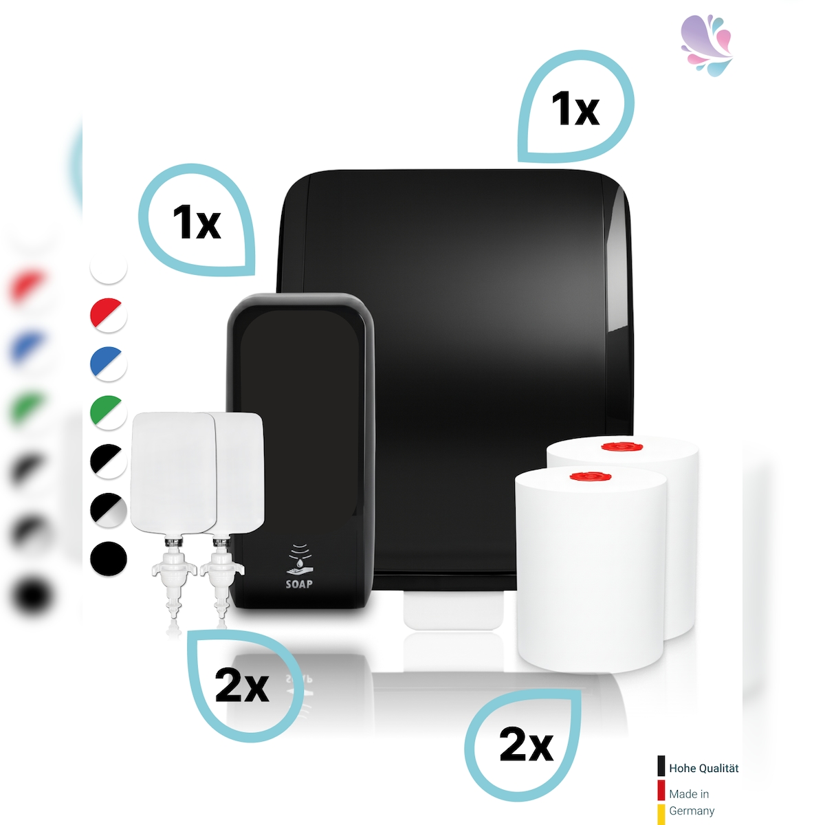 Blanc HYGIENIC KOMPLETT-SET Waschraum: Handtuchrollenspender AUTOCUT + 2 TAD Handtuchrollen + Schaumseifenspender SENSOR + 2 Kartuschen