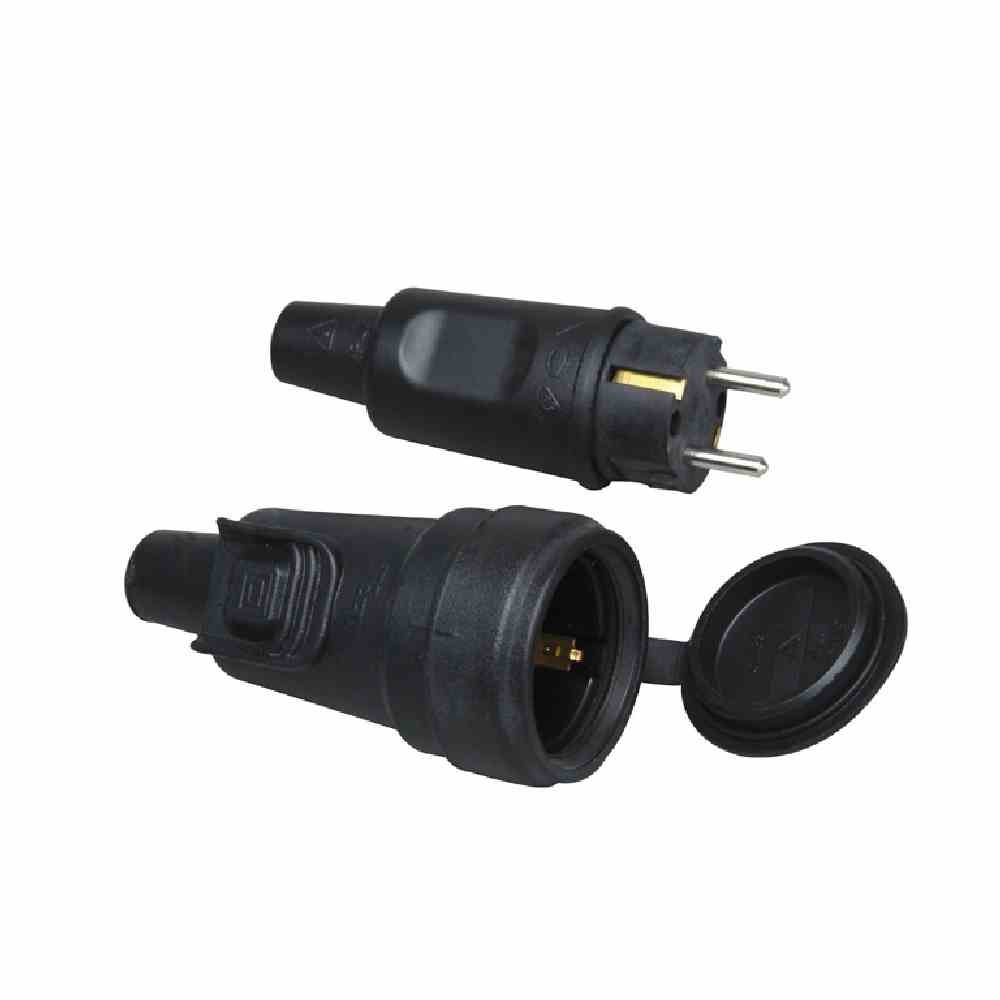 Gummi-Steckverbindungs-Set, IP44, Vollgummistecker und Gummikupplung, schwarz