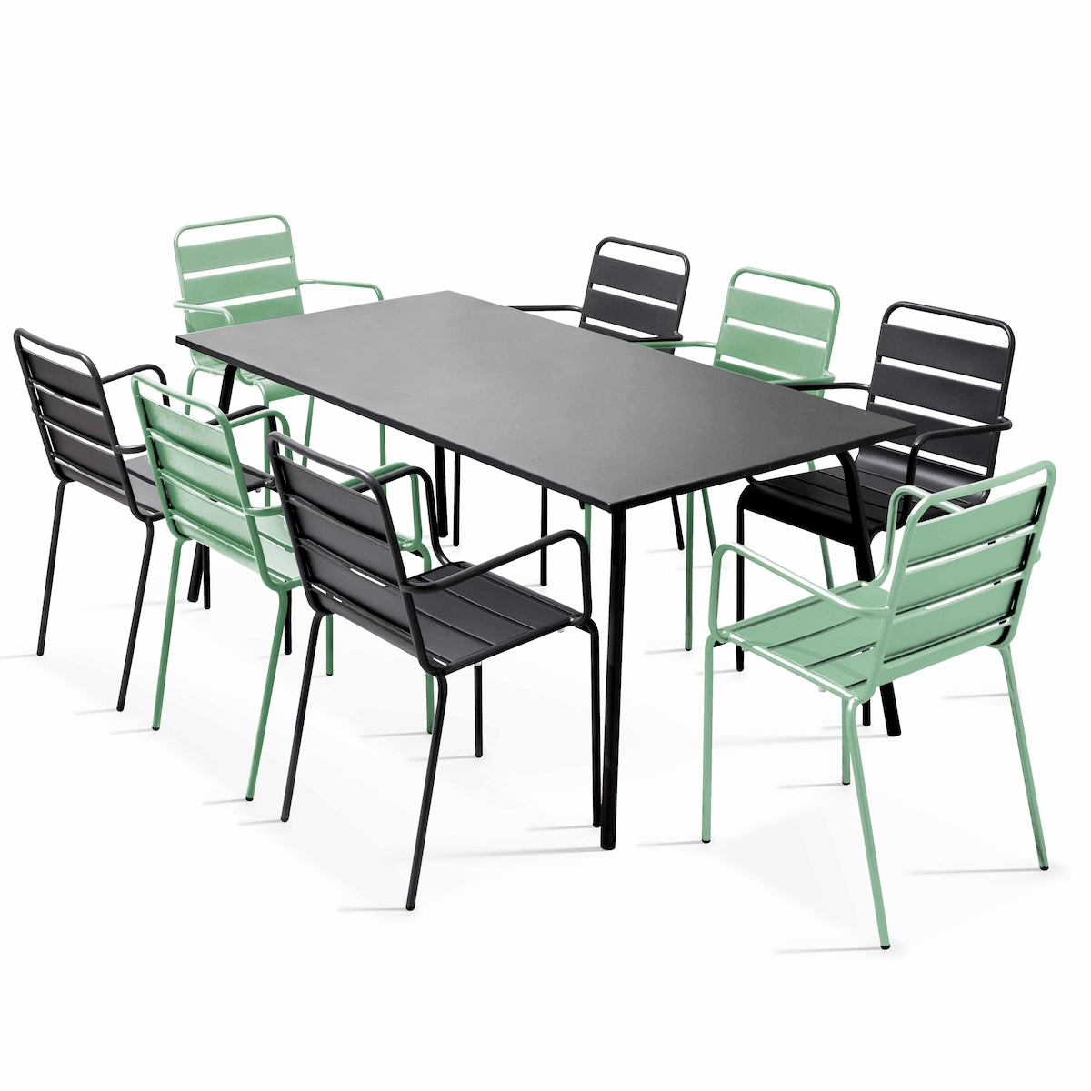 Oviala Business Set aus Gartentisch und 8 Sesseln aus salbeigrünem und grauem Metall