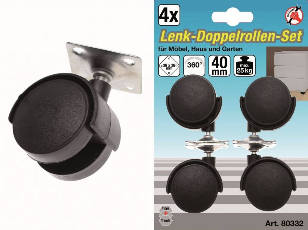 Kraftmann 80332 Lenk Doppelrollen Set 4tlg 360 Grad drehbar 40mm
