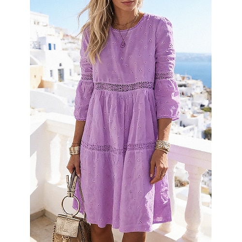 Per donna Mini Abito Abito in Pizzo Vestito Casual Abito a trapezio Abito Estivo Elegante Casual Quotidiano Vacanza Data Vestibilità regolare Semplice Manica Lunga Girocollo Bianco Estate