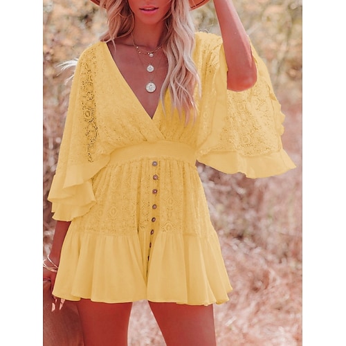 Per donna Mini Abito Abito Bianco Abito in Pizzo Vestito Casual Moda Moderno All'aperto Vacanza Uscire Vestibilità regolare Semplice Manica 3/4 Scollo a V Blu Rosa chiaro Nero Bianco Estate Primavera