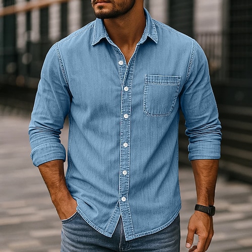 Per uomo Camicia Camicia casual Camicia vintage Camicia con Bottoni Nero Verde chiaro Vino Blu marino Blu Manica Lunga Semplice Bavero Casuale Uscire Tasca Abbigliamento Vintage Moda Retrò Vintage