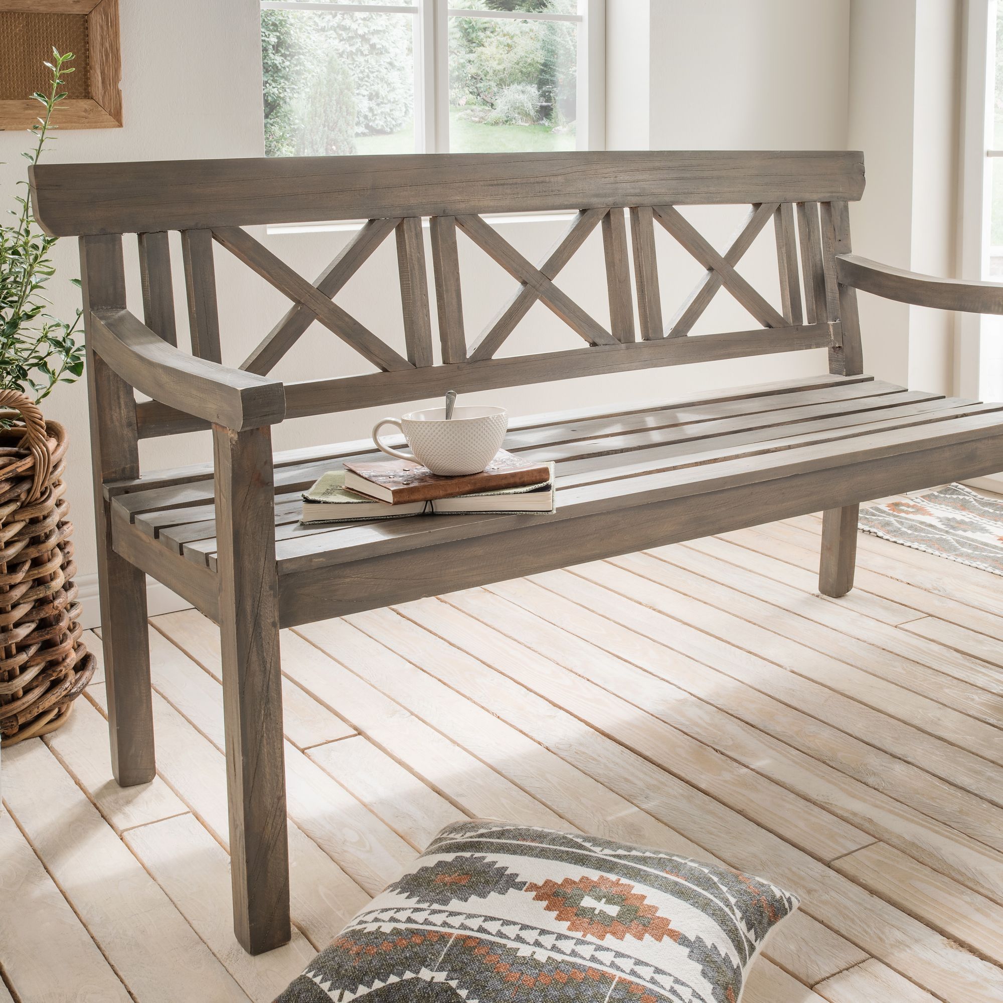 Wandgarderobe in Weiß Beige Vintage Look