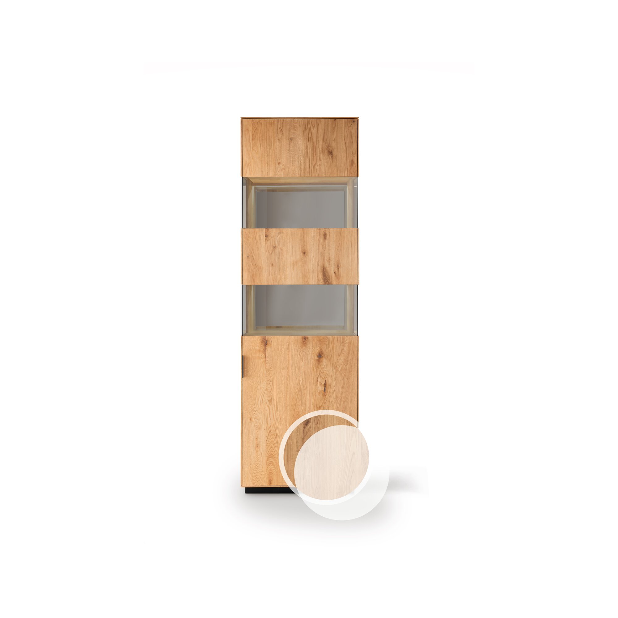 Vitrine links - 1 Glas-, 1 Holztür