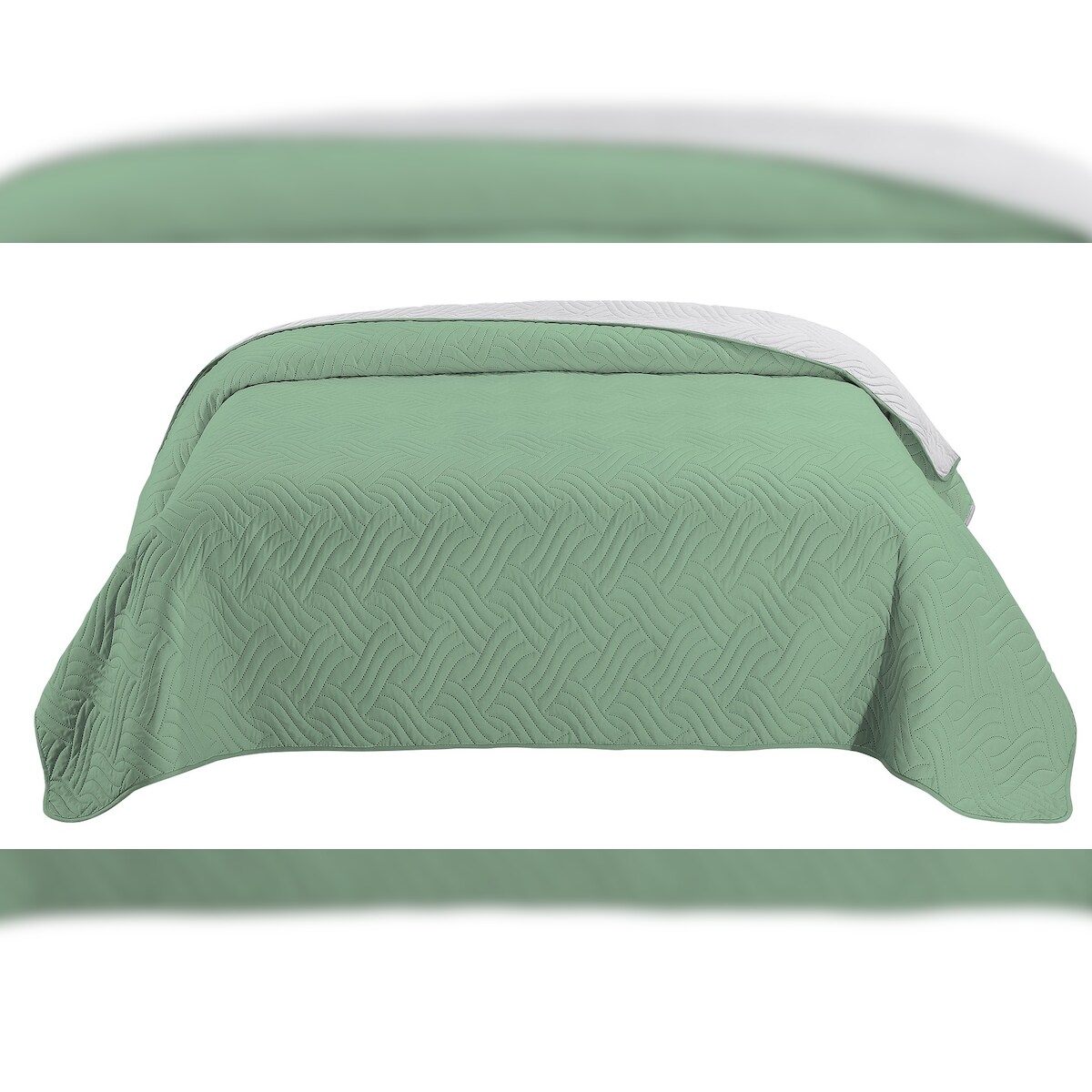 wometo Tagesdecke 170x210 OEKO-TEX - grün hellgrau Microfaser-Bezug wattiert gesteppt Wende-Design XXL Sofa Couch Bett Bettüberwurf