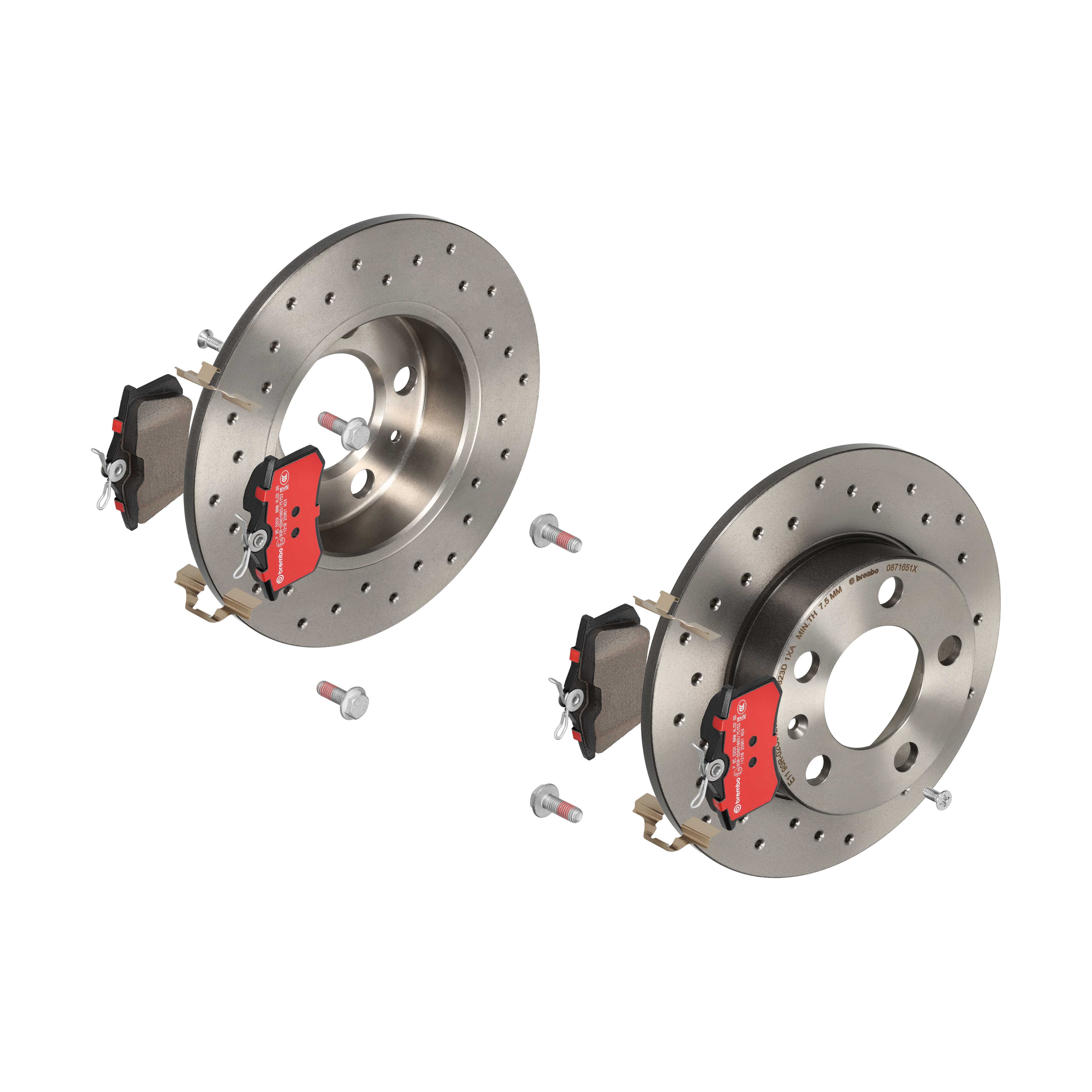 Brembo Bremsensatz-Hinterachse Xtra Line Bremsensatz, Scheibenbremse Hinten Rechts Links Gelocht 253mm Für Skoda Vw Seat Peugeot (Faw) (Svw) Rely Audi