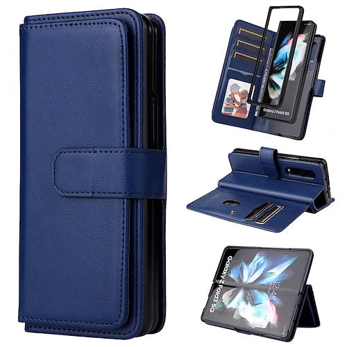 telefono Custodia Per Samsung Galaxy Z Fold 6 Z Fold 5 Z Fold 4 Z Fold 3 Custodia in pelle Con Portacarte Cavalletto Tinta unica PC Pelle PU