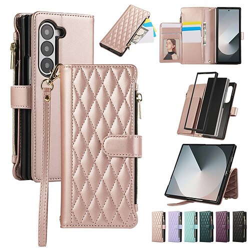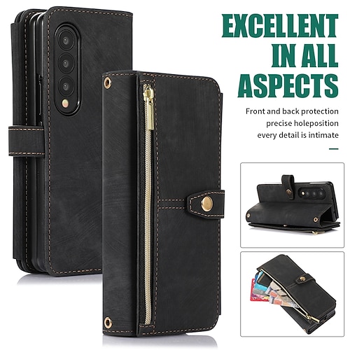 telefono Custodia Per Z Fold 6 Z Fold 5 Z Fold 4 Z Fold 3 Custodia Portafoglio con Supporto Magnetico Cerniera Retrò TPU PC