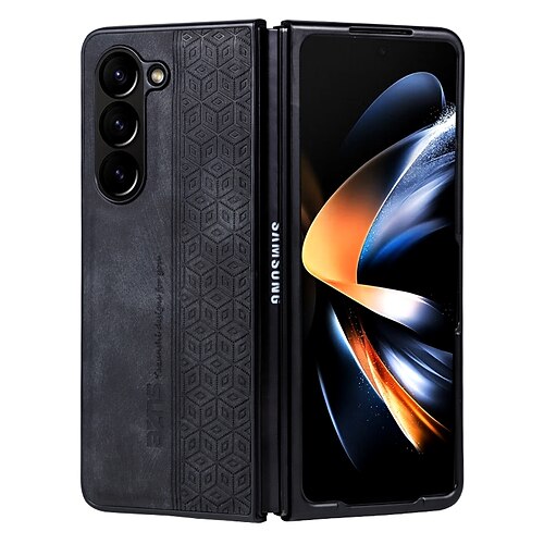 telefono Custodia Per Samsung Galaxy Z Fold 6 Z Fold 5 Z Fold 4 Z Fold 3 Copertura Posteriore con Supporto Supporta la Ricarica Wireless Resistente agli urti Retrò TPU Pelle PU