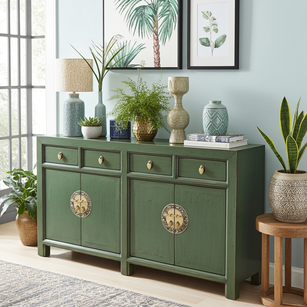 OPIUM OUTLET Asia Möbel Kommode Schrank Sideboard Hochzeitsschrank 31196 oliv Landhaus-Stil asiatisch chinesisch orientalisch