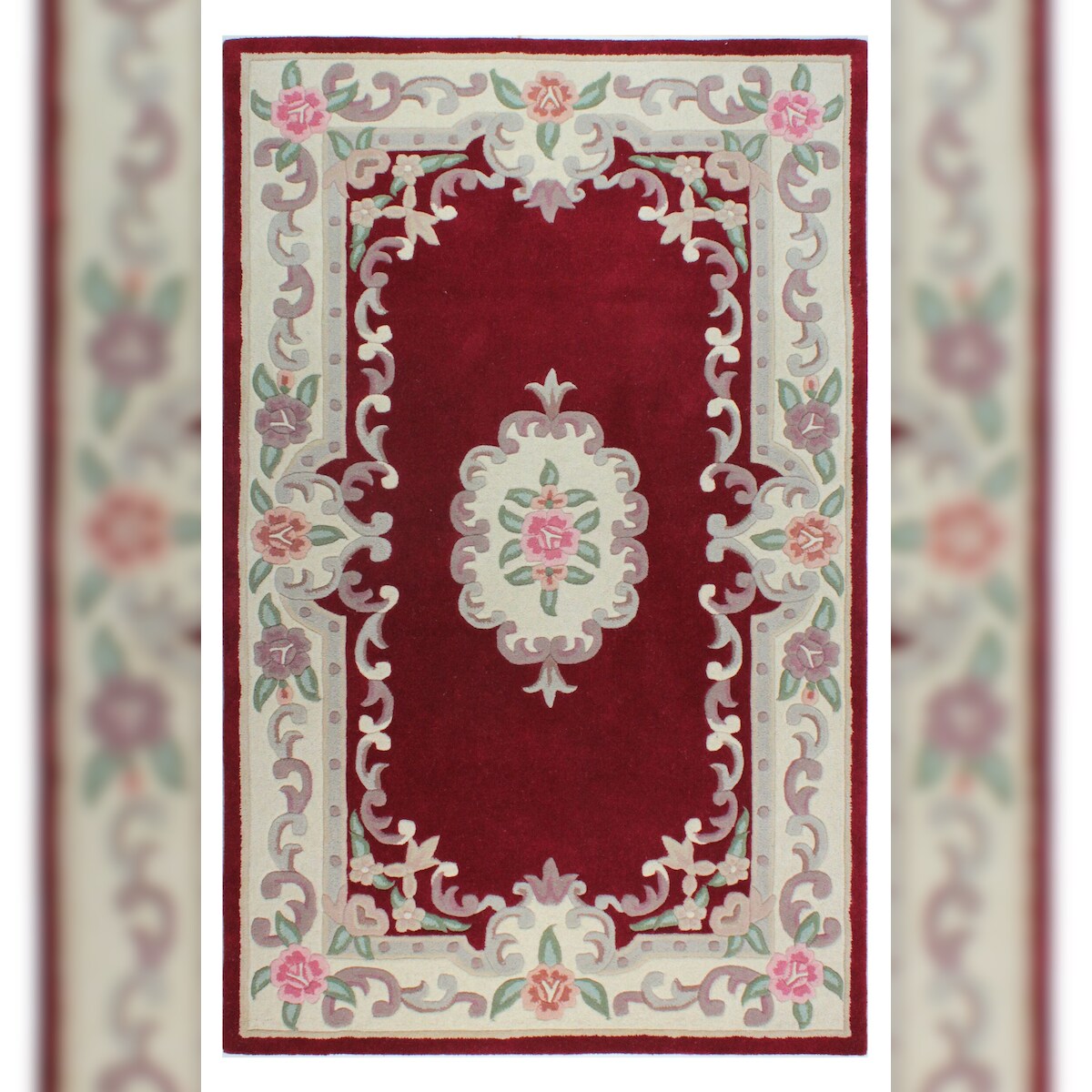 Traditioneller Wollteppich `Beauly` mit Handgeschnitzten Details. Farbe: Rot-Beige, 120x180 cm | Kadima Design