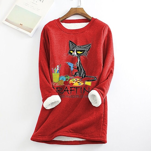Per donna Pigiama felpato foderato in pile Gatto Caldo Morbido Festival Manica Lunga Girocollo Top lunghi Casuale Sportivo Stampato Giallo Rosa Rosso Blu Grigio Autunno Inverno