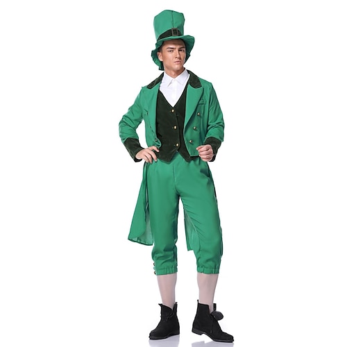 San Patrizio 2026 Leprechaun Irlandese fortunato Carnevale Costume di fantasia Frac Medievale Adulti Per uomo Carnevale Giorno di San Patrizio Feste Costume di Carnevale facile Vestirsi
