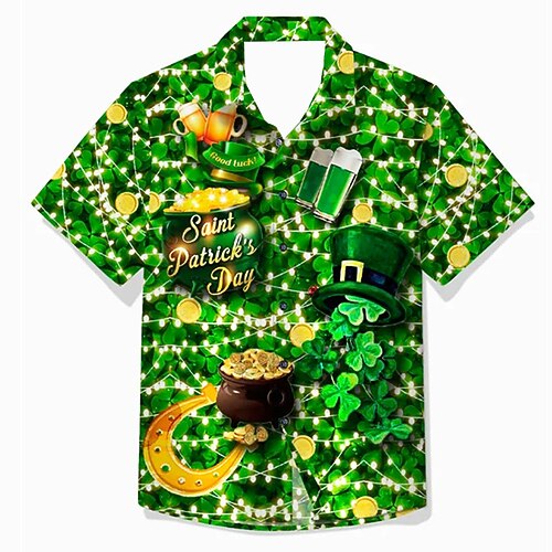 festa di san patrizio quadrifoglio camicia casual da uomo abbigliamento quotidiano per uscire nel fine settimana estate couverture maniche corte verde scuro, verde s, m, l camicia in tessuto