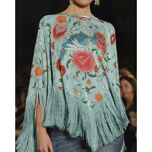 Per donna Blusa Floreale Attivo Elegante Manica Lunga Girocollo Top Regolari Quotidiano Ferie Uscire Nappa Stampato Blu Giallo Estate Primavera