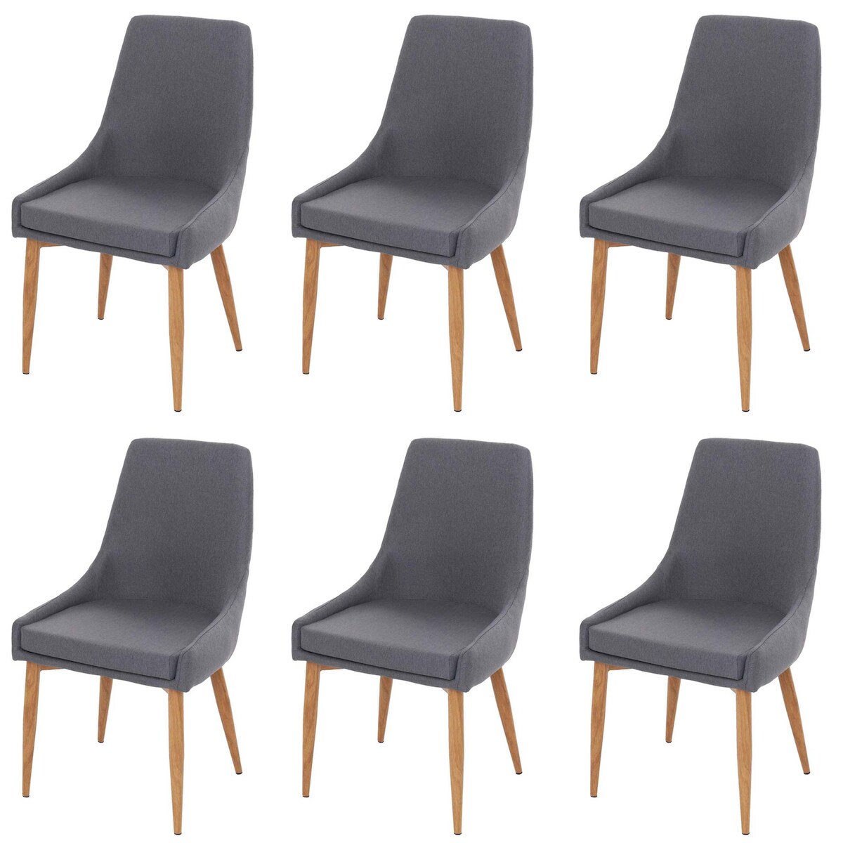 Mendler 6er-Set Esszimmerstuhl HWC-B44 II, Stuhl Küchenstuhl Retro Design ~ Stoff/Textil dunkelgrau