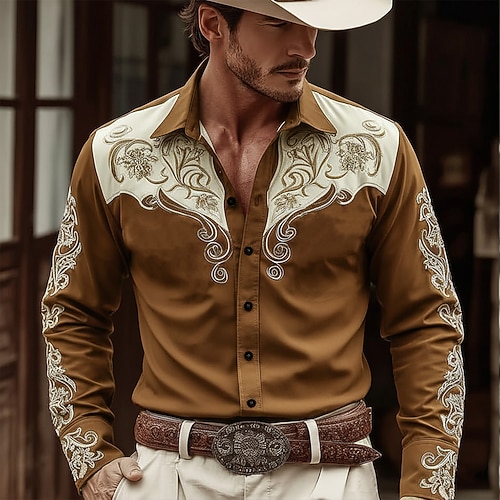 Per uomo Stampa Floreale Etnico Fiori Camicia Camicia Western Camicia da cowboy Manica Lunga Vintage Retrò All'aperto Casuale Abbigliamento da lavoro Primavera Autunno Collo ripiegato Due tasche