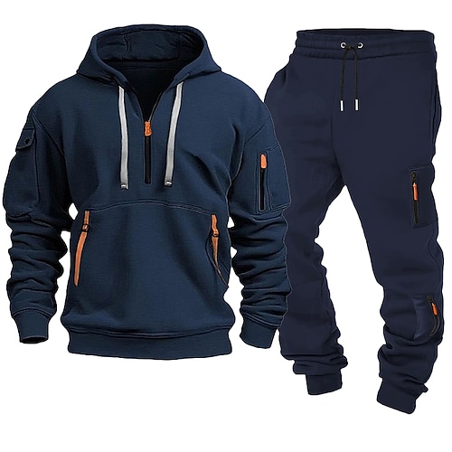 Per uomo Set coordinati Blu Felpa con Cappuccio Pantaloni da tuta Joggers Pantaloni Set Manica Lunga Con Cappuccio All'aperto Vacanza Semplice Tasca 2 Pezzi Poliestere Primavera