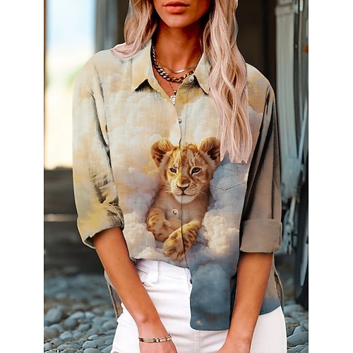 Per donna Blusa Leopardo Elegante Casual Manica Lunga Colletto a Camicia Top Regolari Quotidiano Bottoni Stampato Rosso Verde Grigio Primavera Autunno