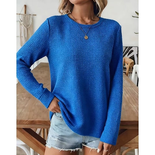 Per donna Blusa Tinta unica Elegante Casual Manica Lunga Girocollo Top lunghi Quotidiano Tasca Nero Blu Viola Marrone Verde Primavera Autunno Inverno