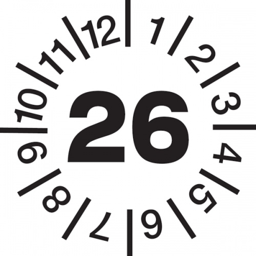 König Werbeanlagen Jahresprüfplaketten ab 26, Jahresfarben, Folie, Ø 10 - 30 mm - Bogen = 10 Plaketten - 30 mm Folie selbstklebend