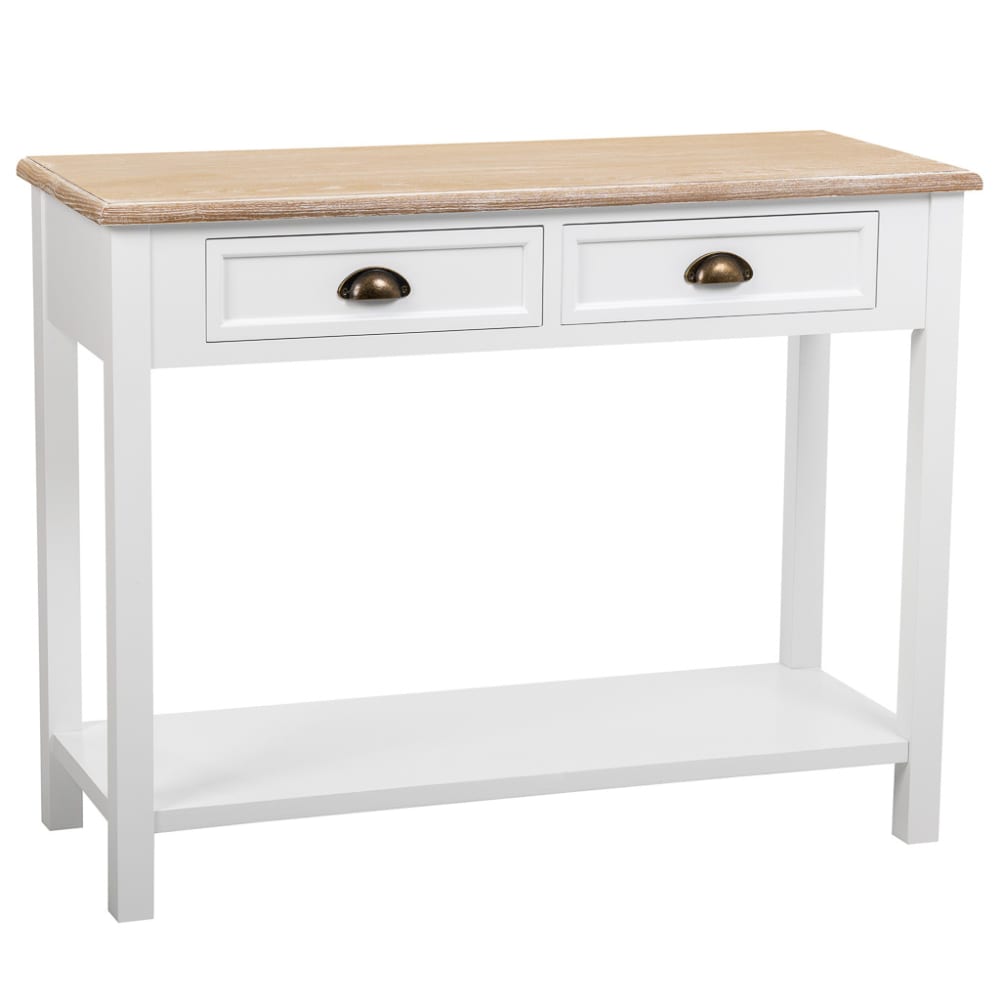 Mobile da ingresso in legno con 2 cassetti e 1 ripiano bianco