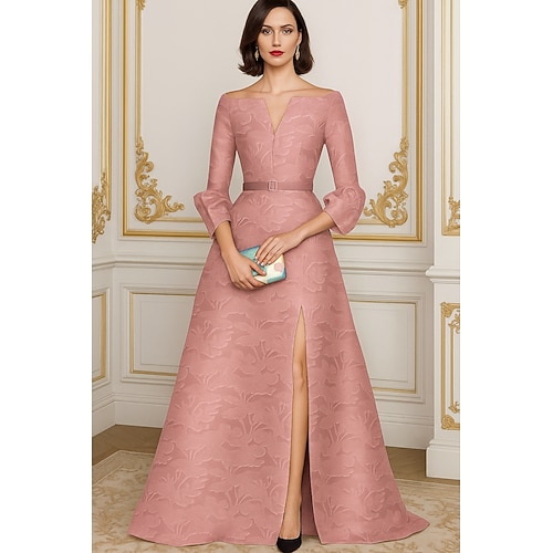 Linea ad A Lunghezza al pavimento Abito da Sera Abito formale Elegante Vintage Spacco Alto Manica 3/4 Scollo a V Matrimonio Formale Pizzo con Pizzo Ricamo