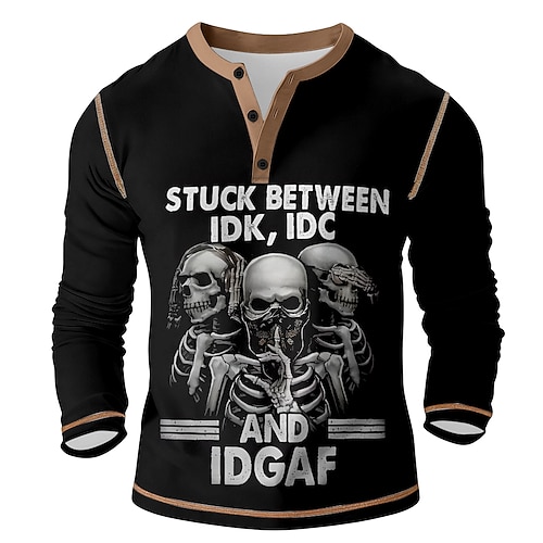 Per uomo Grafico Teschio Maglia Henley Maglietta Manica Lunga Vintage Moda Designer Casuale Quotidiano All'aperto Autunno Primavera Autunno Nero Henley Maglietta Henley