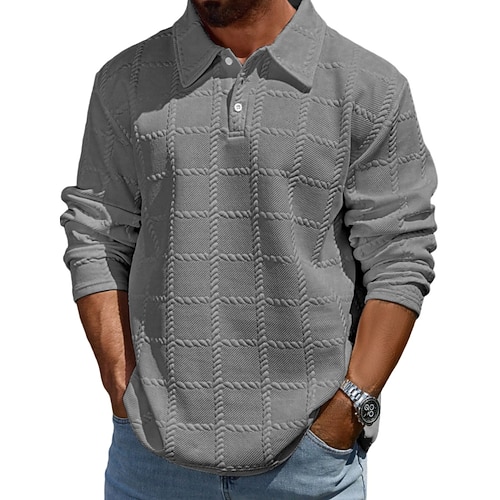 Per uomo Maglia da golf Polo da Golf Lavoro Casuale Bavero Manica Lunga Essenziale Moderno Semplice Jacquard Bottoni Primavera Autunno Vestibilità regolare Nero Bianco Vino Blu marino scuro Blu Verde