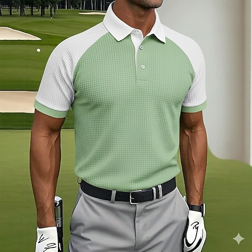 Per uomo Polo a nido d'ape Camicia da golf Golf Ufficio Informale Bavero Manica corta Essenziale Moderno Liscio Pulsante Primavera estate Standard azzurro cielo Verde pisello Nero Rosso Blu marino