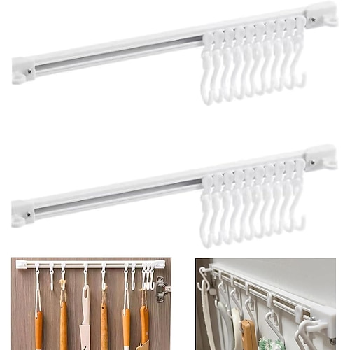 Ganci scorrevoli multifunzionali da 3 pezzi, ganci scorrevoli senza foratura per riporre gli oggetti in cucina, ganci adesivi a forma di S per organizzare i mobili