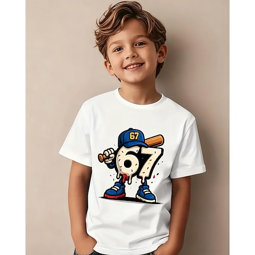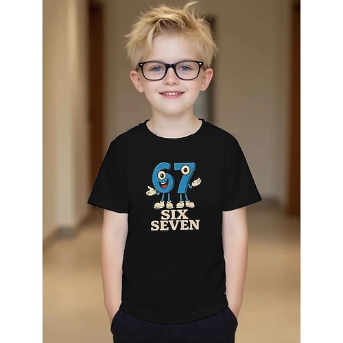 Unisex Ragazzi 3D Grafico Gergo divertente 67 Maglietta Manica Corta Stampa 3D Estate Primavera Sport Moda Streetwear Bambini 4-12 Anni Girocollo All'aperto Casuale Quotidiano Vestibilità regolare