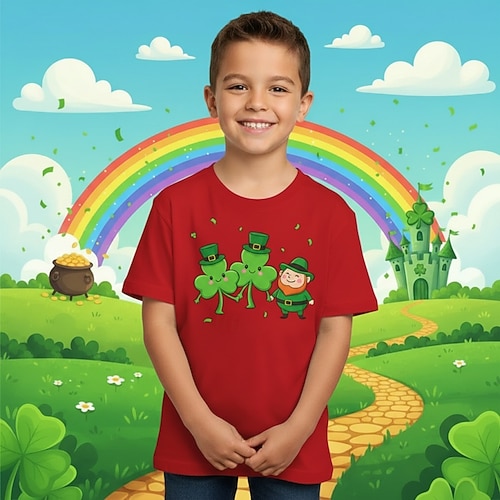 San Patrizio Unisex Ragazzi 3D Grafico Auto Quadrifoglio Maglietta Manica Corta Stampa 3D Estate Primavera Sport Moda Streetwear Bambini 4-12 Anni Girocollo Casuale Quotidiano All'aperto Vestibilit