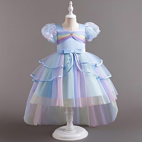 Abito da damigella d'onore bambina Ragazze Abito formale Abiti da sposa Feste Matrimonio Formale Moda Adorabile Principessa Patchwork Rete Arcobaleno Da principessa Maniche Corte Colletto quadrato