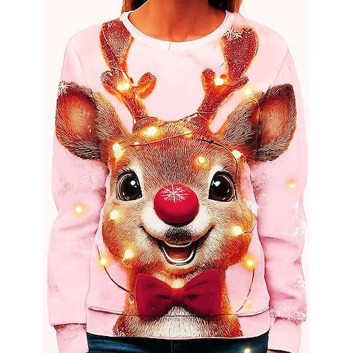 Felpa Pullover da donna con cappuccio grafica animale renna moda casual a maniche lunghe collo rotondo top regolari street quotidiano casual stampa bianco rosa blu primavera autunno inverno