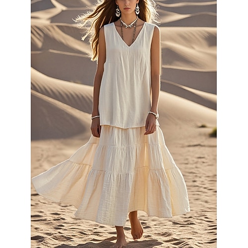 Per donna Abito maxi Finto cotone e lino Abito a Tubino Vestito Estivo Abito da Spiaggia Elegante Moda Moderno All'aperto Vacanza Uscire Vestibilità regolare Semplice Senza Maniche Scollo a V Bianco
