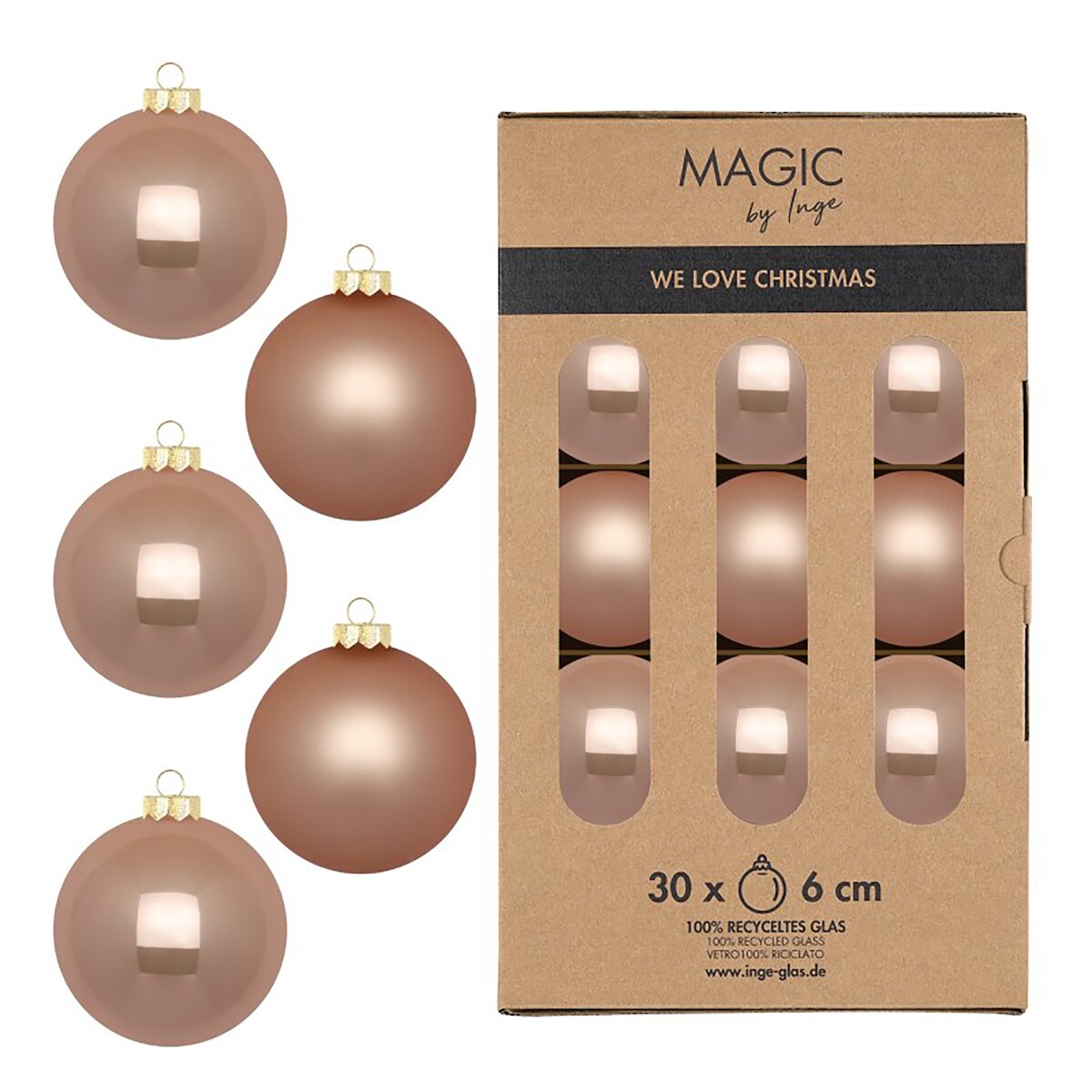 30 Weihnachtskugeln Glas 6cm matt & glänzend Christbaumkugeln Weihnachtsbaumkugeln Weihnachten Christbaumschmuck Weihnachtsbaumschmuck Beige