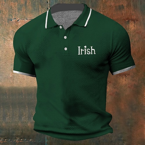 Per uomo Trifoglio Lettera Magliette Polo a Nido d'Ape Manica Corta Magliette polo Camicie con Colletto Casual Business Casual Abbigliamento da sera Abbigliamento Quotidiano Abito da festa Stampa 3D