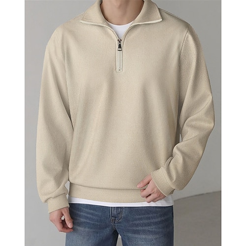 Per uomo Polo Polo con zip a un quarto Abbigliamento quotidiano Data Zip a un quarto Manica Lunga Moda Essenziale Semplice Cerniera Primavera Autunno Vestibilità regolare Aalbicocca Nero Marrone