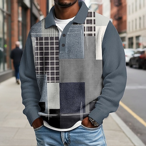 Per uomo Geometrico Linea Magliette Polo a Nido d'Ape Manica Lunga Magliette polo Camicie con Colletto Business Casual Affari Abbigliamento da lavoro Abbigliamento quotidiano Bottoni Primavera