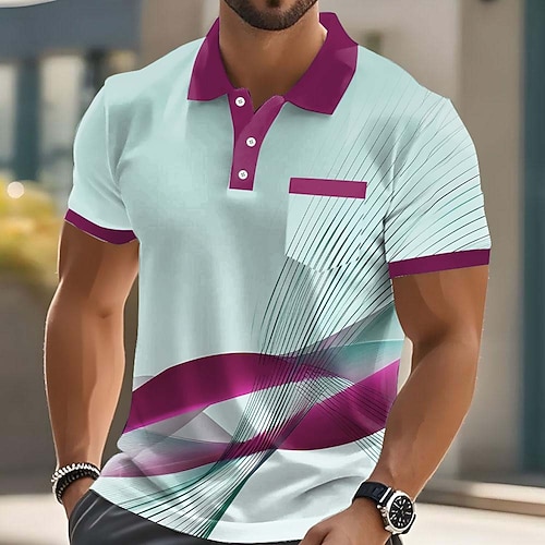 Per uomo Geometrico Golf Polo Manica Corta Magliette polo Bavero Casual Athleisure Abbigliamento quotidiano Stampa 3D Bottoni Estate Blu Viola Verde