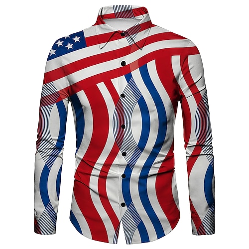 Americano 250 Retrò Vintage Anni '70 Camicia Camicia Aloha Lunghe Hippie Geometrico Etnico Costume Per uomo Mascherata 4 Luglio Feste Giorno dell'Indipendenza Semiquincentenario Adulti Camicia